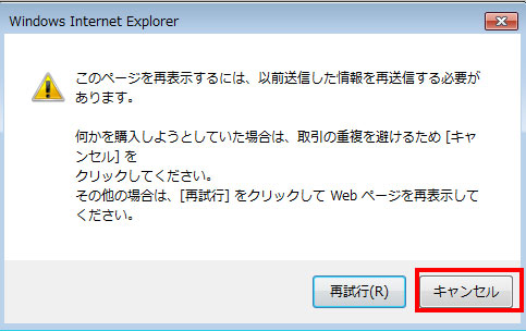 ブラウザの中央にこのような画面が表示されたら「キャンセル」をクリックして下さい。