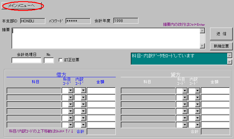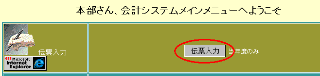 再起動した場合は会計システムに再度ログインして「伝票入力」ボタンをクリックして下さい。