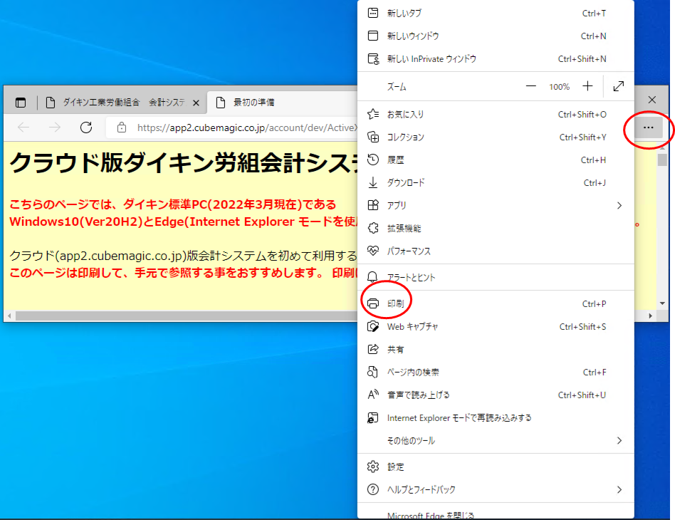 このページは印刷して、手元で参照する事をおすすめします。 印刷は、メニュー[…]-[印刷]をクリックします。